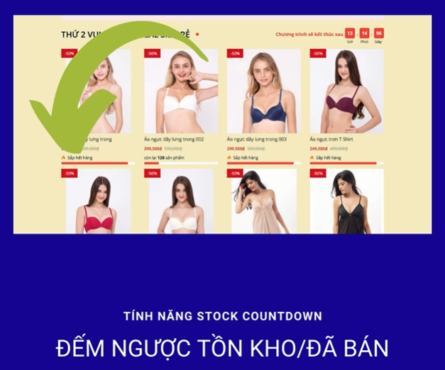 Stock Countdown: Giúp đếm ngược số sản phẩm đã bán hoặc số sản phẩm còn lại trong chiến dịch sales với số thực