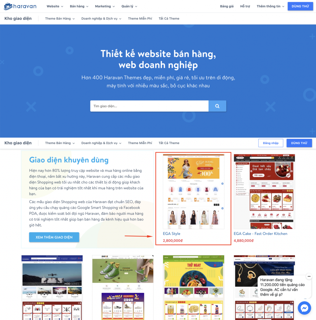 ✅ Vào kho là thấy ngay trên top 1 giao diện web mới ạ: https://themes.haravan.com/products/ega-style