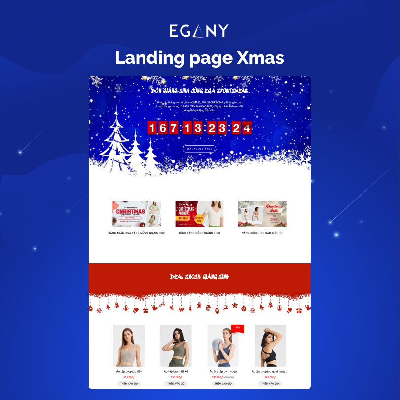 - Trang Landing page Xmas: Thích hợp chạy chương trình khuyến mãi lớn vào dịp Giáng Sinh (có thể thiết lập lại theo các chủ đề khác để sử dụng cho cả năm)