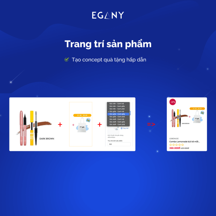 • Và, tất nhiên không thể thiếu bộ trang trí gian hàng (ghép khung ảnh nhanh chóng) → được nâng cấp hơn với tính năng điều chỉnh vị trí cho ảnh sp khớp với khung để tạo ra các concept quà tặng kèm hấp dẫn.