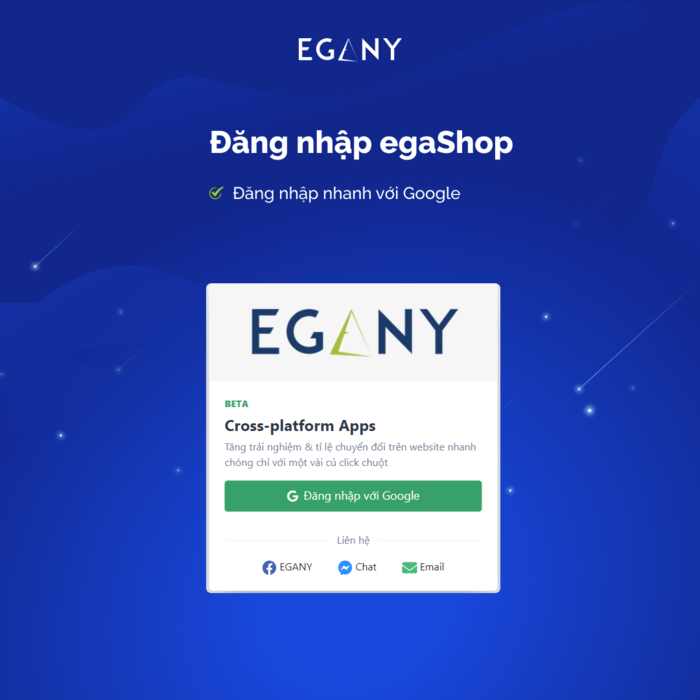 egaShop là ứng dụng đa nền tảng giúp chủ shop dễ dàng nhúng sản phẩm, giỏ hàng vào trang bán hàng chiến dịch, giúp khách hàng dễ dàng mua sắm trực tiếp trên trang bán hàng (landing page) và tối ưu tỷ lệ chuyển đổi cho cửa hàng